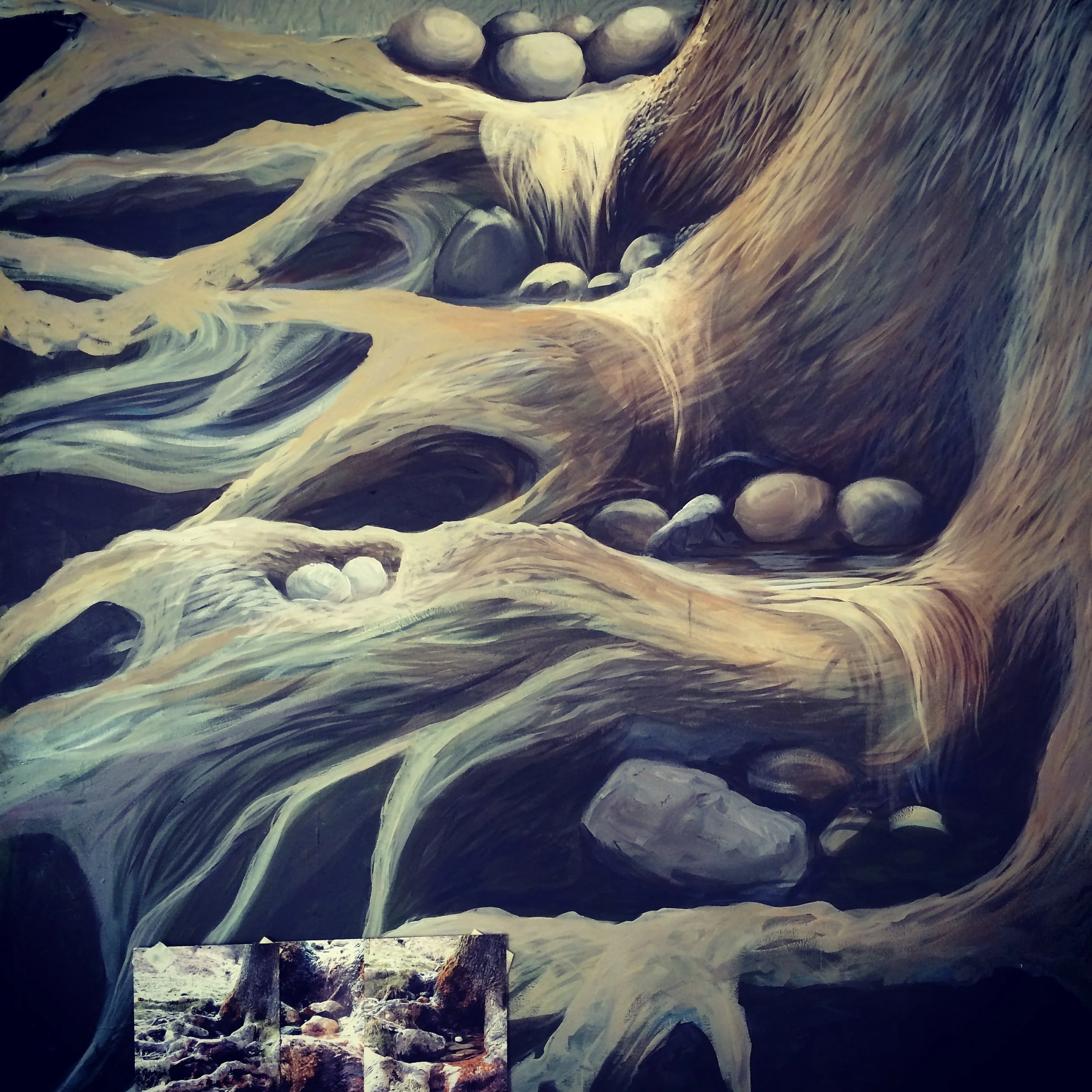 Root, rock, river: Loughrigg Fell Acrylic on canvas 4ft x 4ft